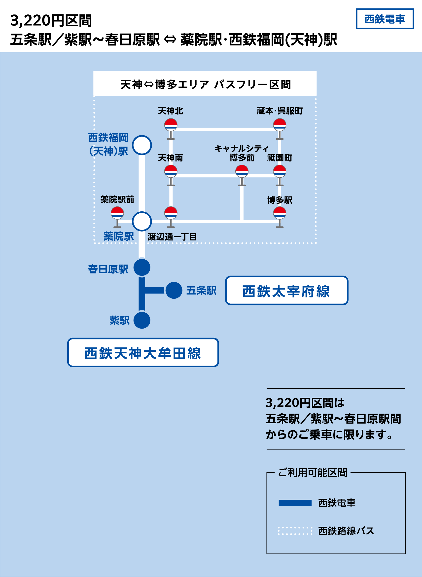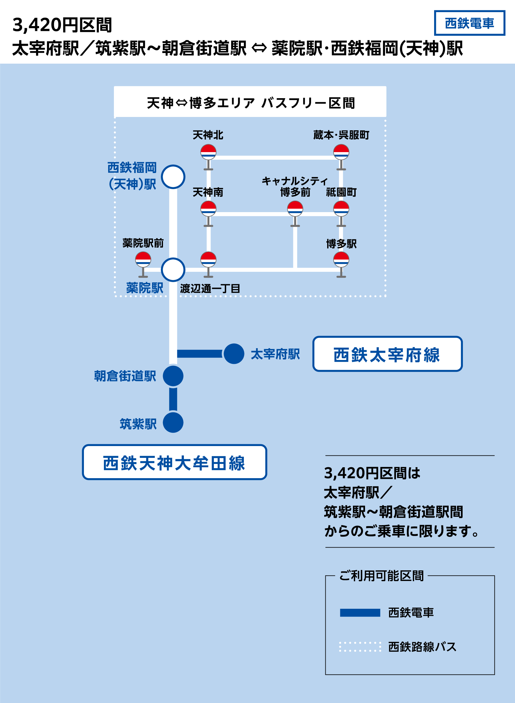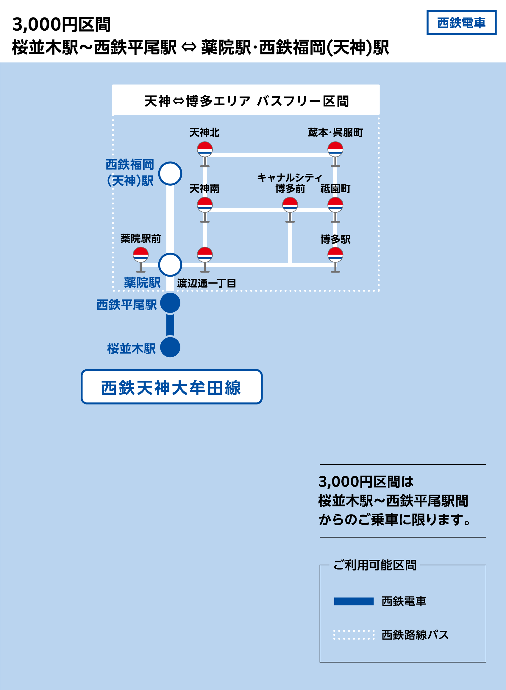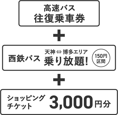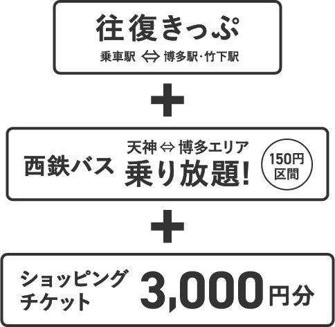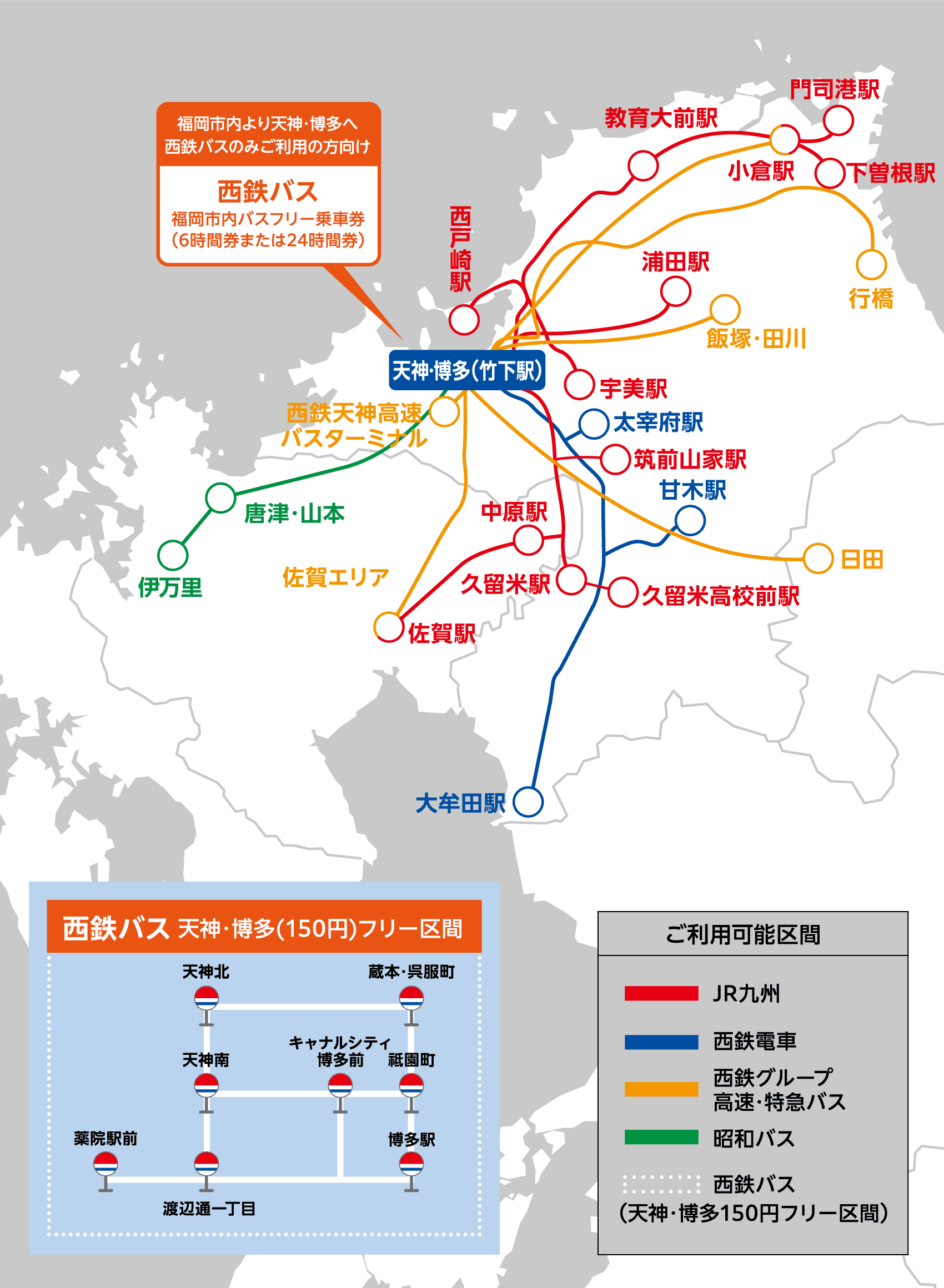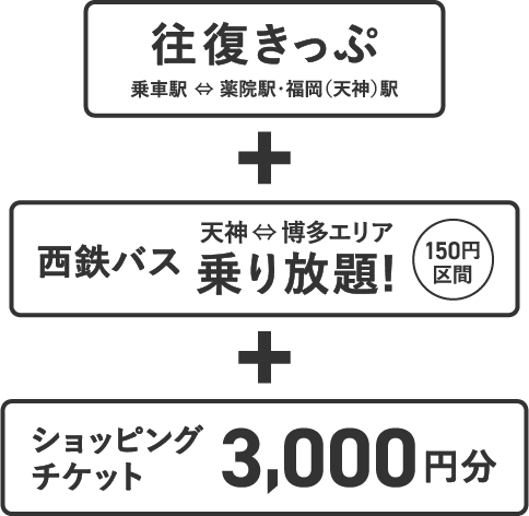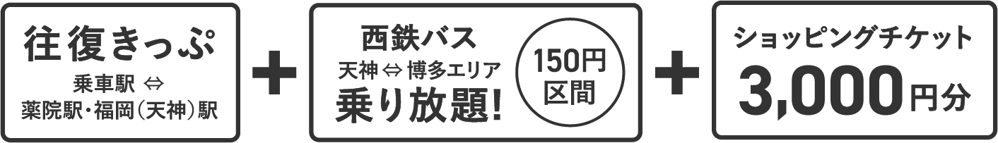 ※天神⇔博多150円エリアバスフリーチケットは付いておりません。