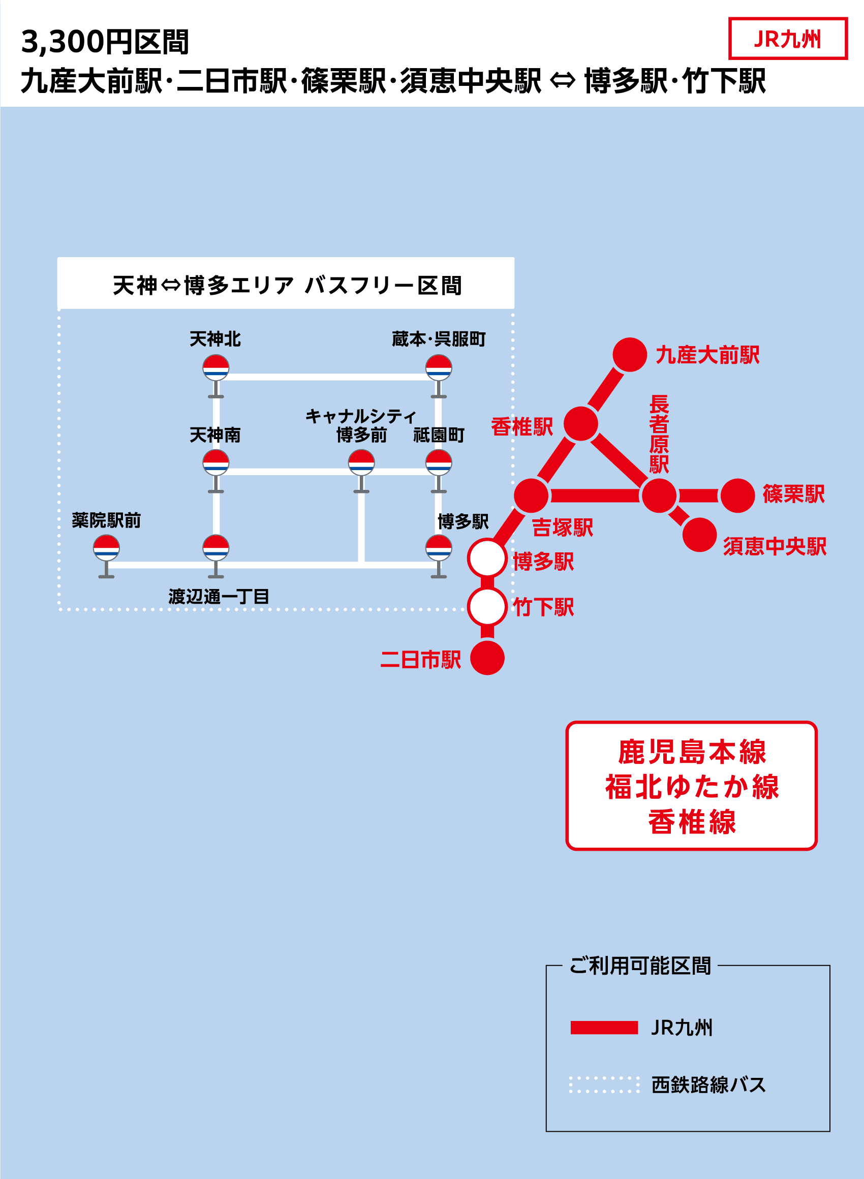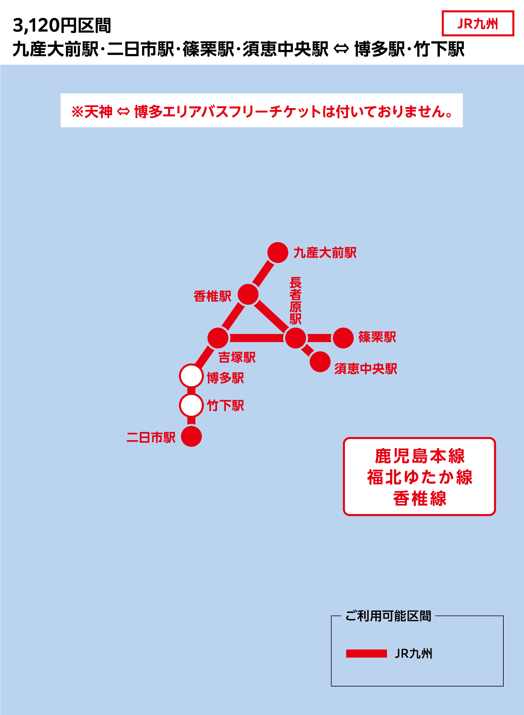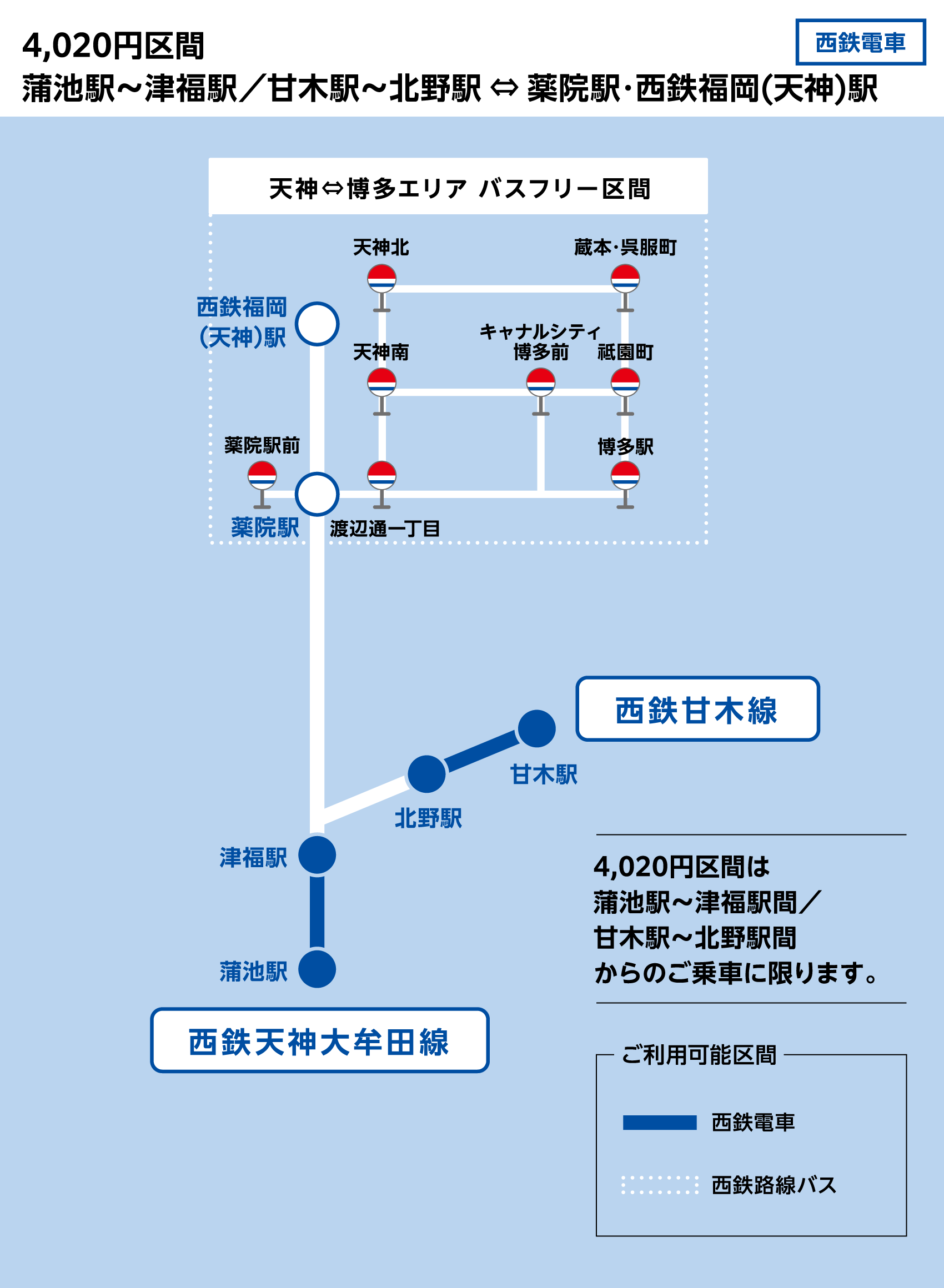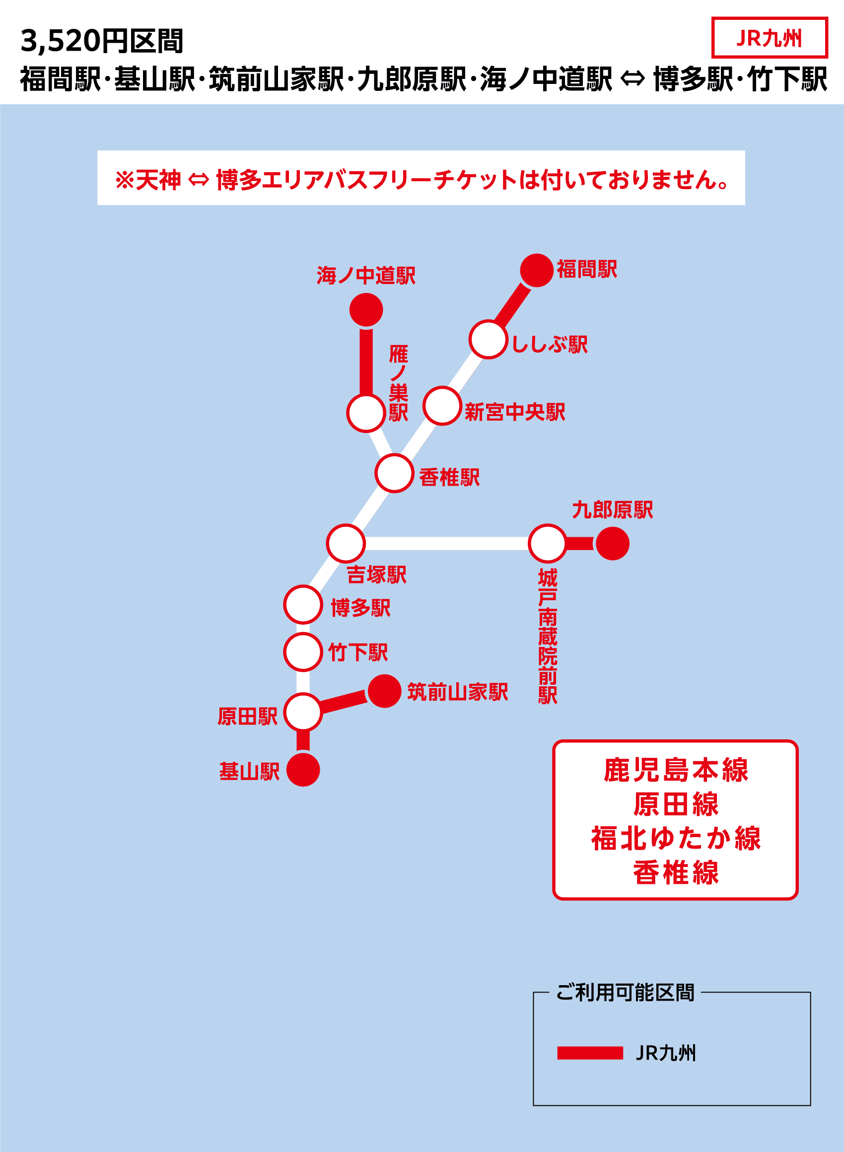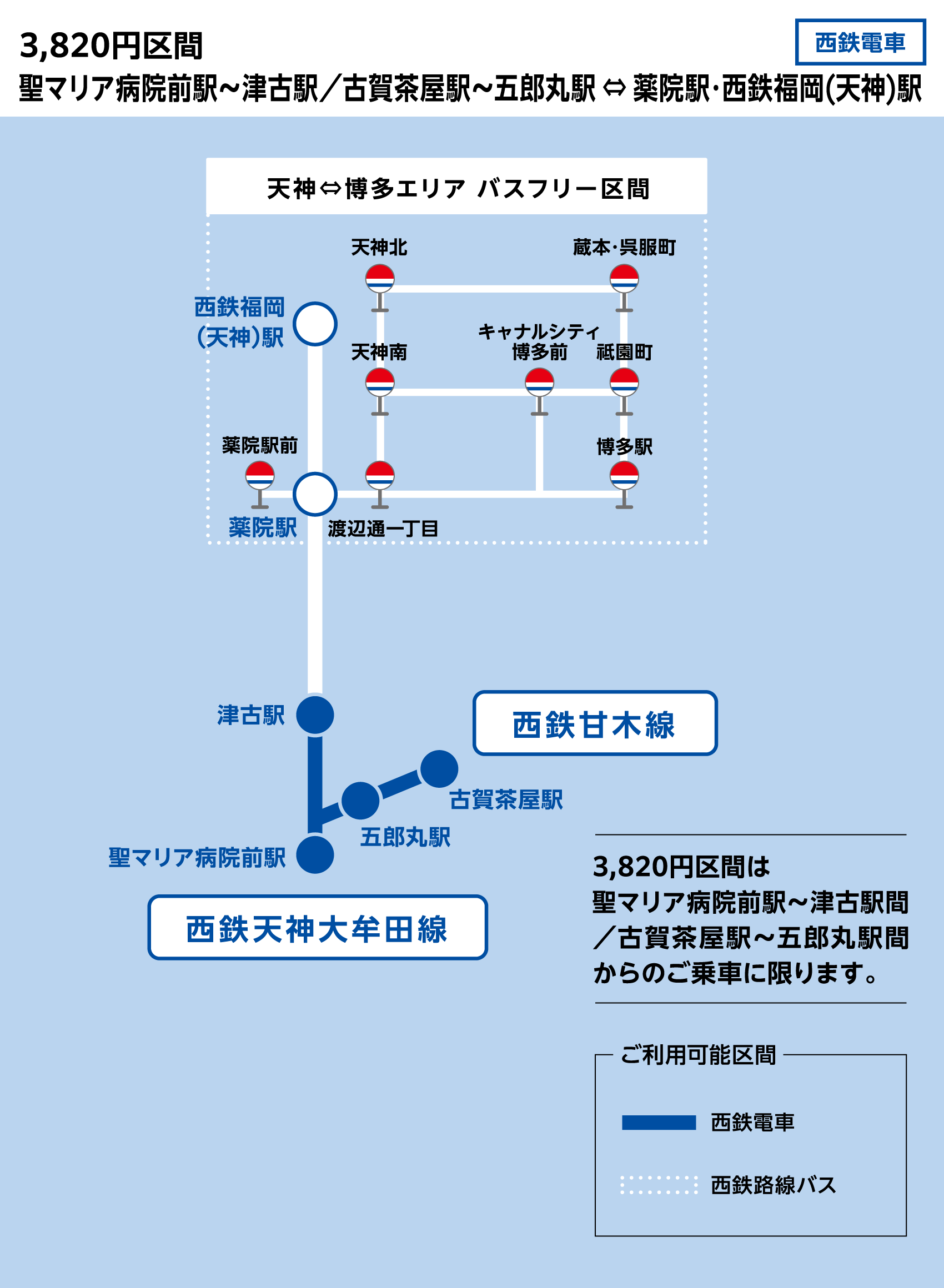 ※天神⇔博多150円エリアバスフリーチケットは付いておりません。