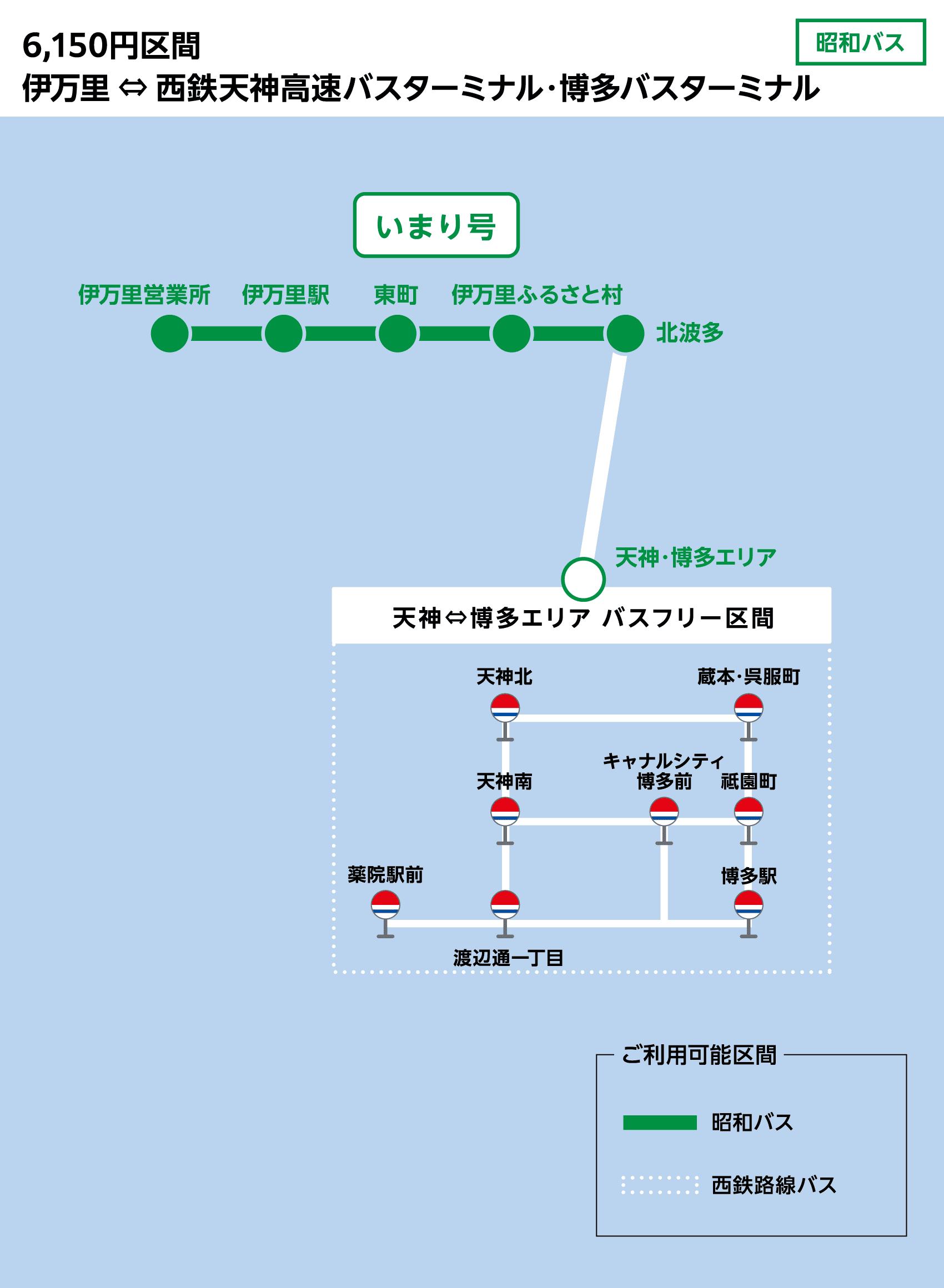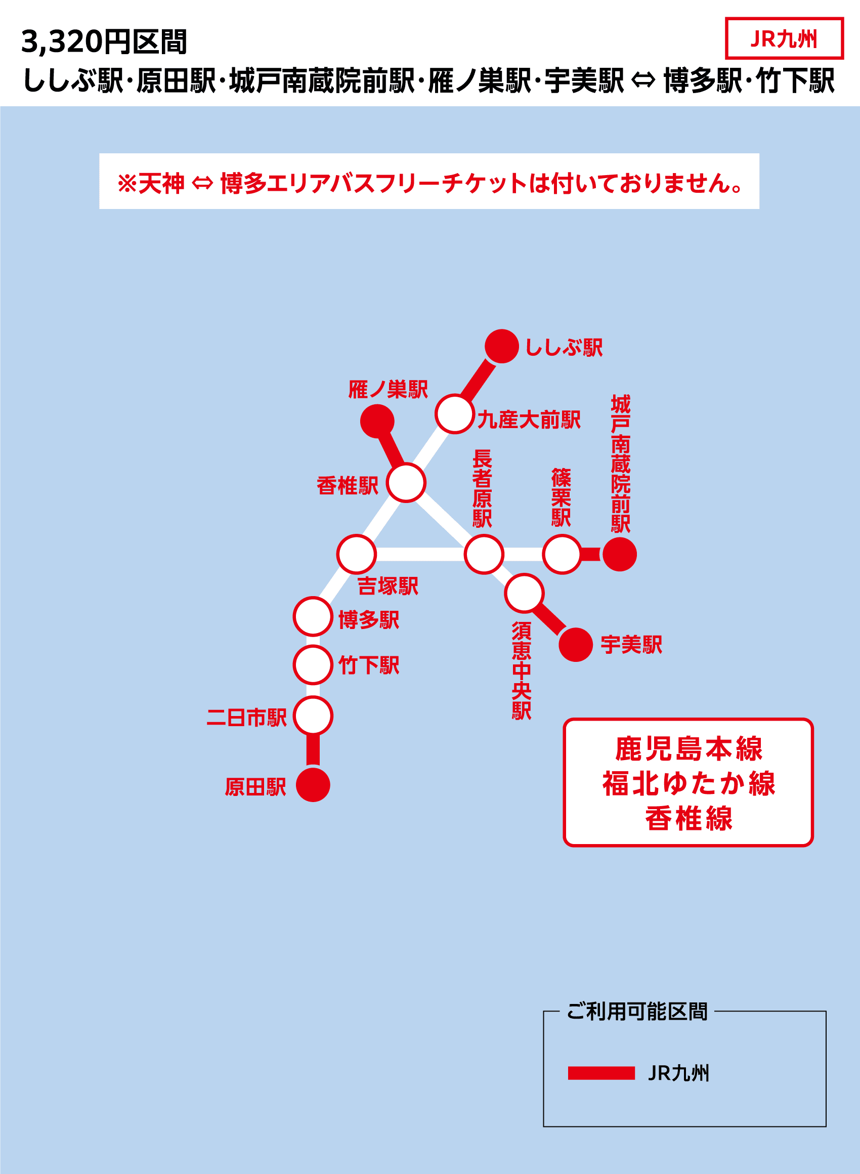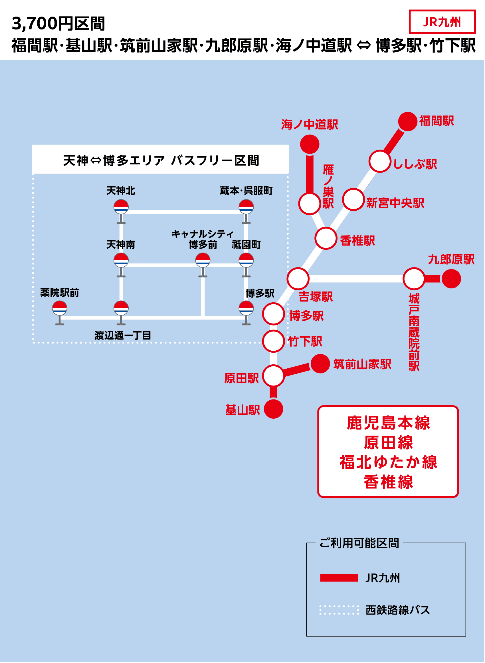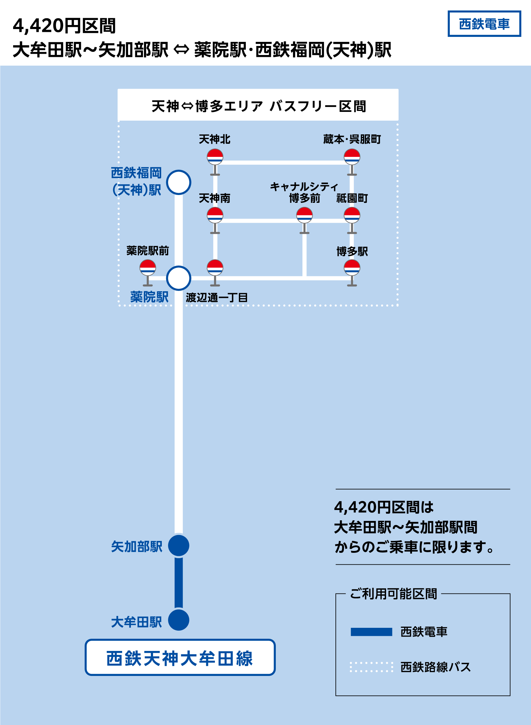 ※天神⇔博多150円エリアバスフリーチケットは付いておりません。