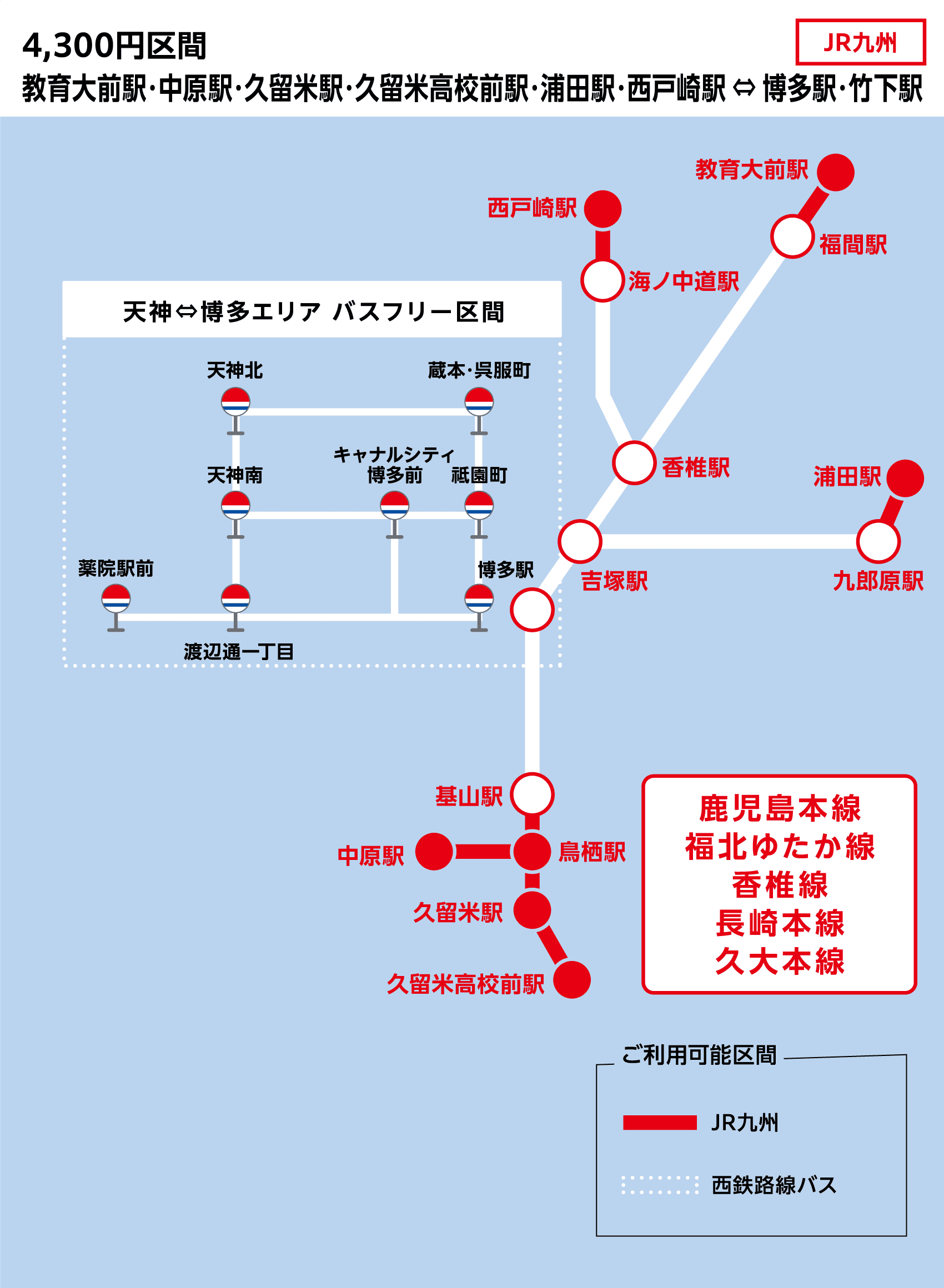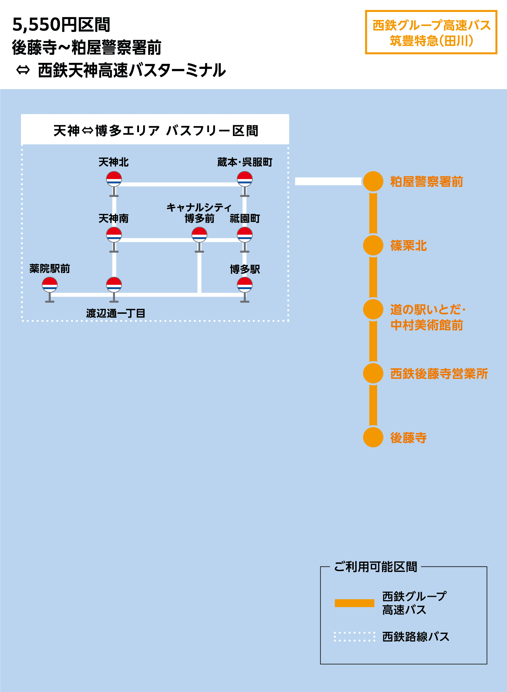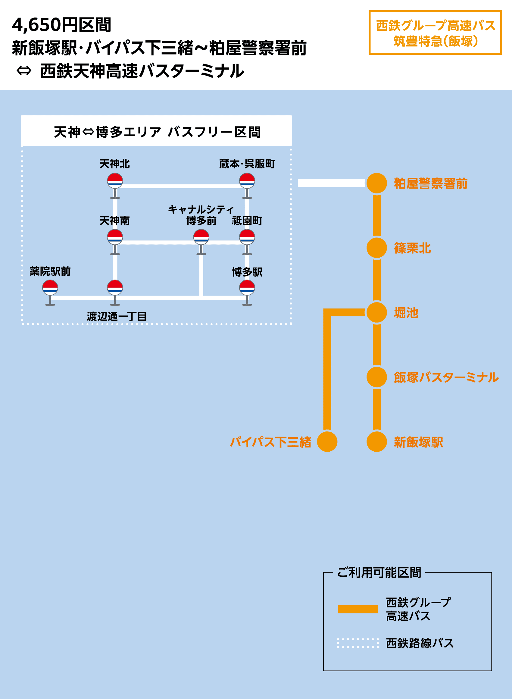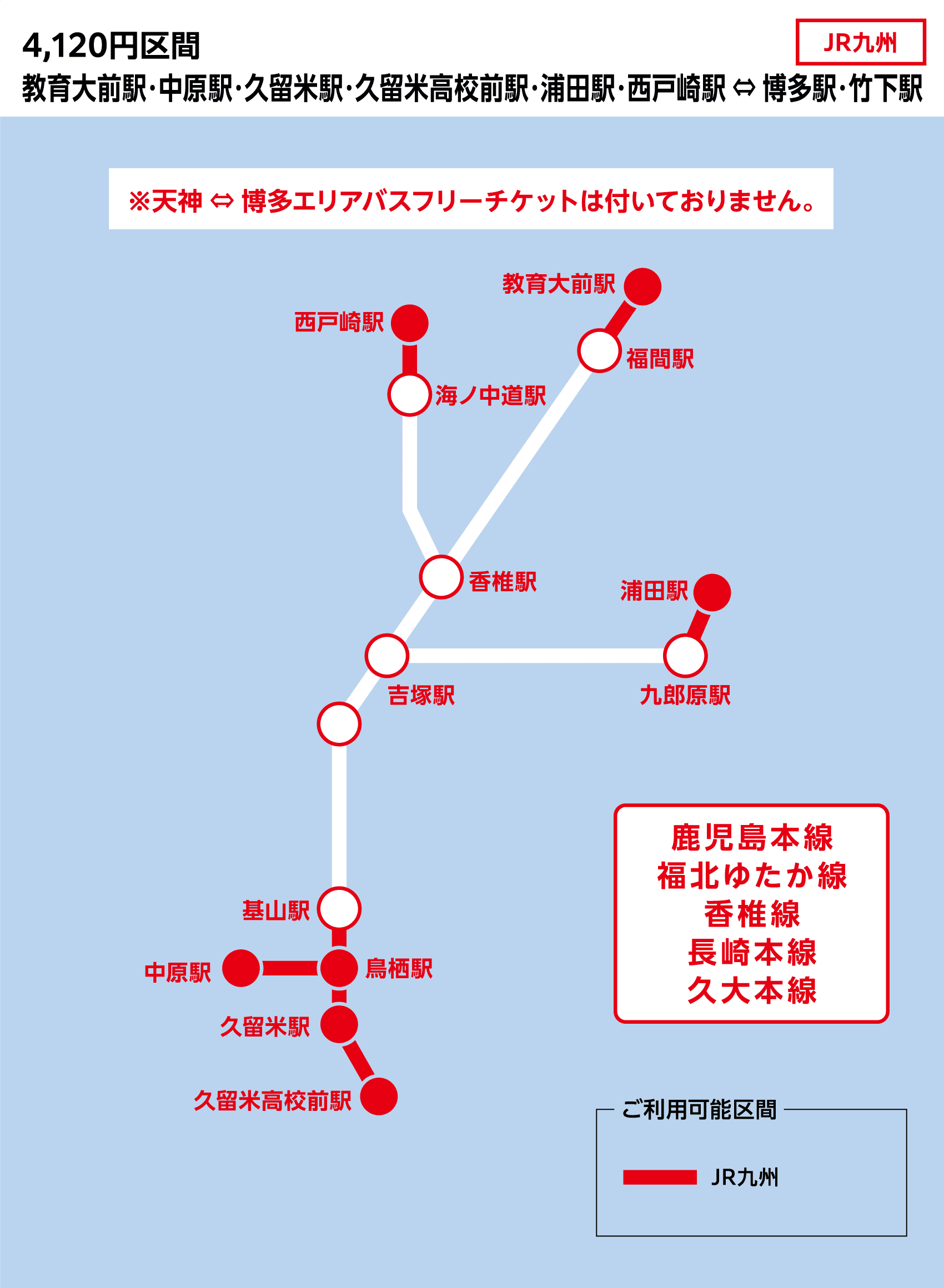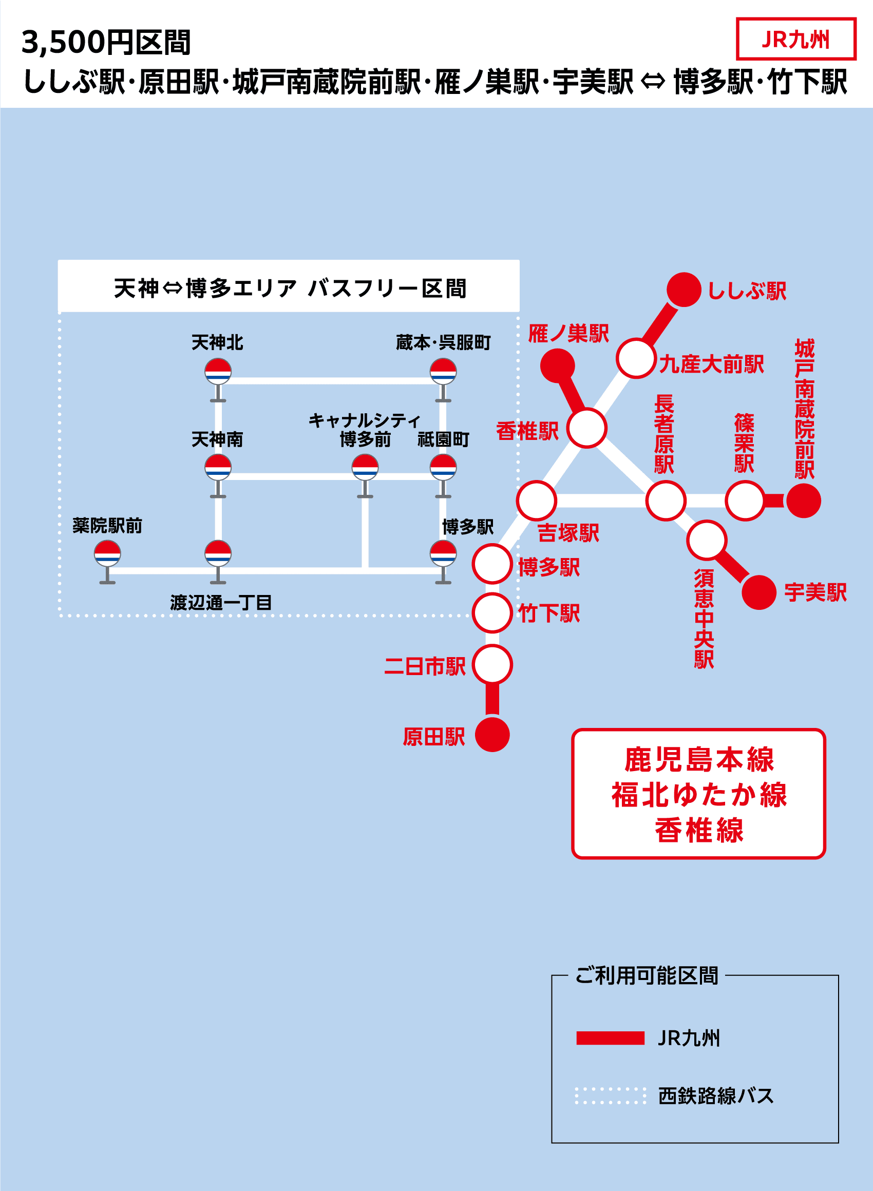 ※天神⇔博多150円エリアバスフリーチケットは付いておりません。